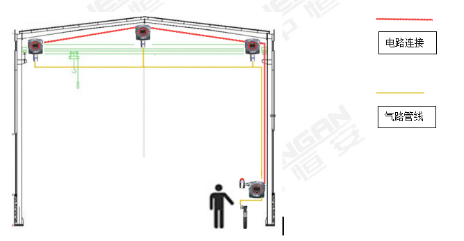配有HA8108防爆型可燃有毒氣體控制器的氣體監(jiān)控系統(tǒng)的維護示意圖