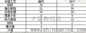 表1 國內(nèi)外印刷廢氣治理技術(shù)占比,%