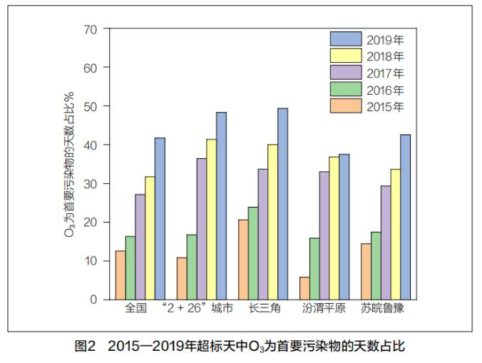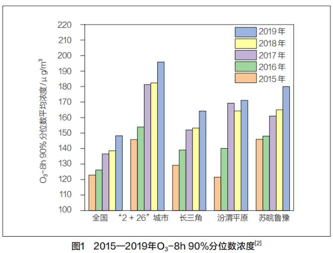 自2013年相繼實(shí)施《大氣污染防治行動計劃》《打贏藍(lán)天保衛(wèi)戰(zhàn)三年行動計劃》以來,我國環(huán)境空氣質(zhì)量改善效果明顯,空氣中二氧化硫(SO2)、二氧化氮(NO2)、可吸入顆粒物(PM10)、細(xì)顆粒物(PM2.5)、一氧化碳(CO)濃度顯著下降,尤其是PM2.5污染控制取得顯著成效,但是臭氧(O3)污染卻呈逐年加重的趨勢,O3污染防控形勢嚴(yán)峻。