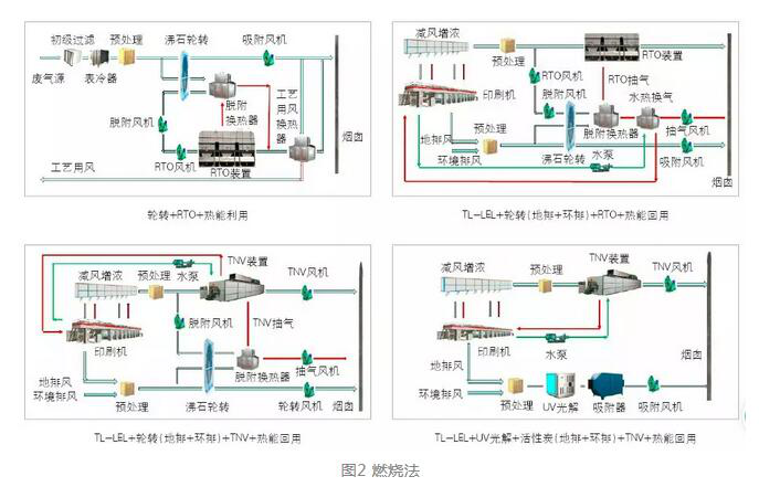 該方法具有如下特點(diǎn):TL-LEL減風(fēng)增濃使熱能循環(huán)利用,節(jié)省能源,減少排風(fēng)量,為末端治理節(jié)約投資;TNV投資少,2萬風(fēng)量的約100萬元左右;燃燒氣和轉(zhuǎn)輪凈化氣均可達(dá)標(biāo);用轉(zhuǎn)輪吸附印刷和干復(fù)機(jī)下排風(fēng)和環(huán)境風(fēng)后送入直燃爐,解決了因減風(fēng)增濃而造成的環(huán)境污染,車間環(huán)境更清潔。該方法采用了換熱式直燃爐,自燃濃度要求比RTO高,正常運(yùn)轉(zhuǎn)要消耗一定燃?xì)猓?萬風(fēng)量為例,燃?xì)庀募s10m3/h,月均消耗費(fèi)用約2萬元,性價(jià)比較高 。