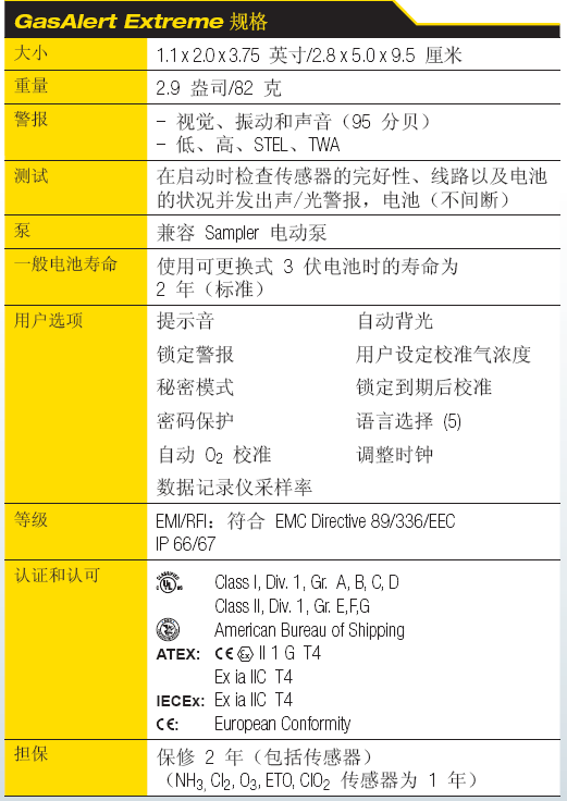 GasAlert Extreme 以舒適耐用為設(shè)計理念,它具有多種有效的有毒氣體模式,能夠可靠地監(jiān)控任何單一有害氣體。通過簡單的開/關(guān)操作,這種單一氣體探測器利用可現(xiàn)場更換的 2 年型電池和傳感器提供長久的使用壽命。校準(zhǔn)是一個簡單的自動化程序,并與 BW 的 MicroDock II 自動測試和校準(zhǔn)系統(tǒng)兼容。廣泛的用戶選項、多語言顯示和數(shù)據(jù)記錄功能使 GasAlert Extreme 成為許多應(yīng)用的理想解決方案。