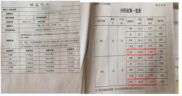 TVOC 國標(biāo)法檢測報(bào)告如下